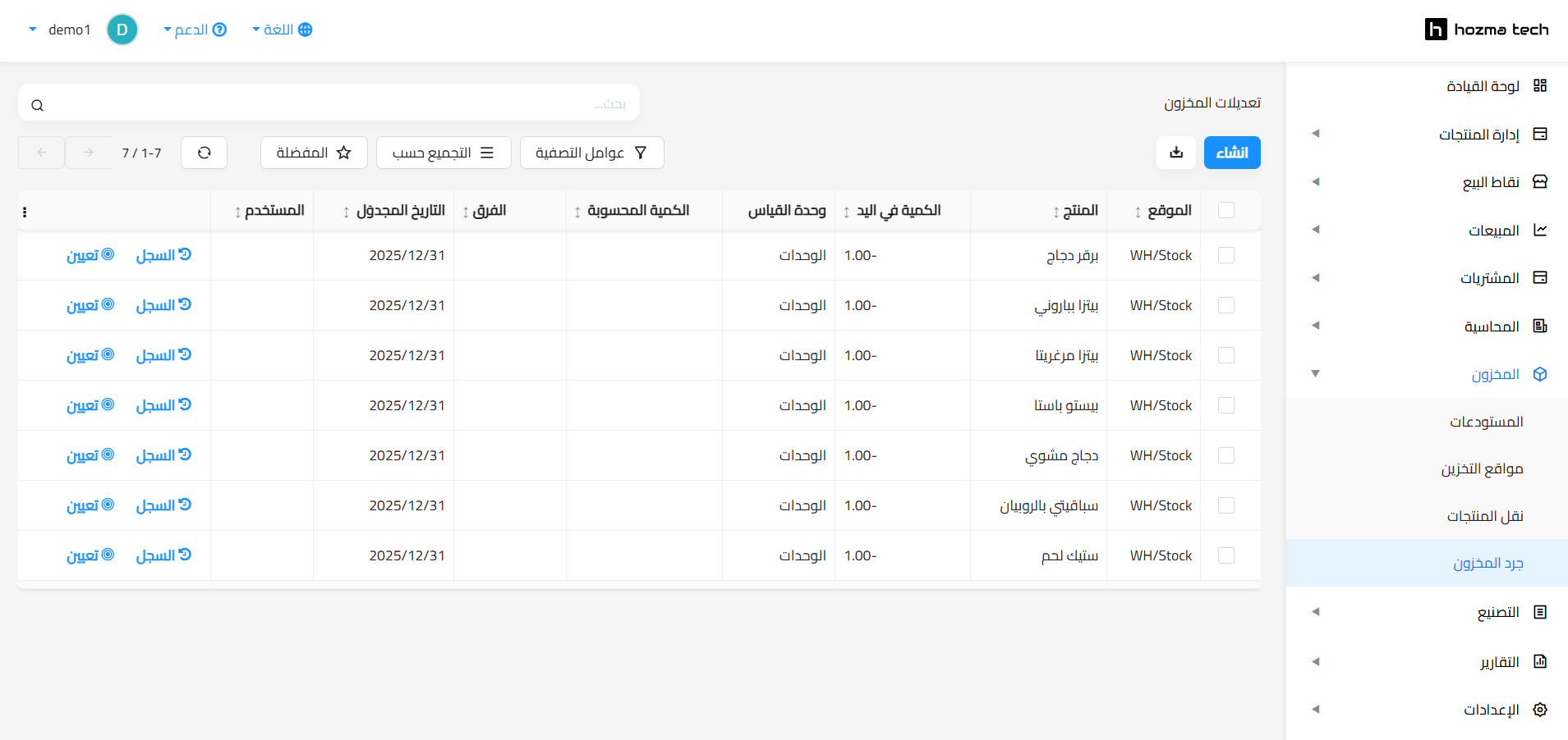 - مكتمل: تم اعتماد الجرد وتحديث الكميات في النظام.